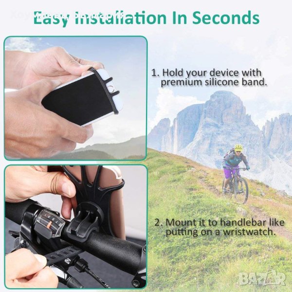 Закрепва се стабилно за рамката на велосипед или мотор БЕЗ риск от падане!!!