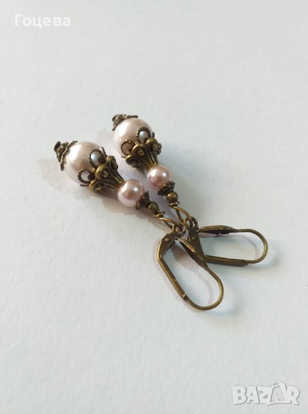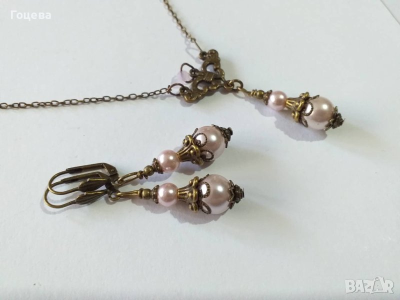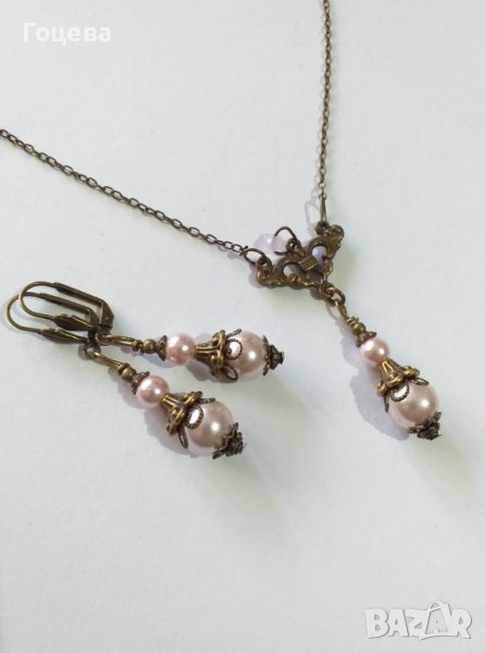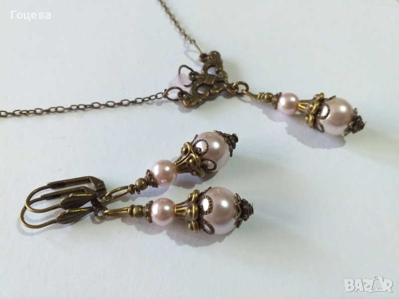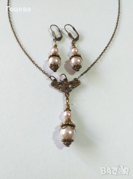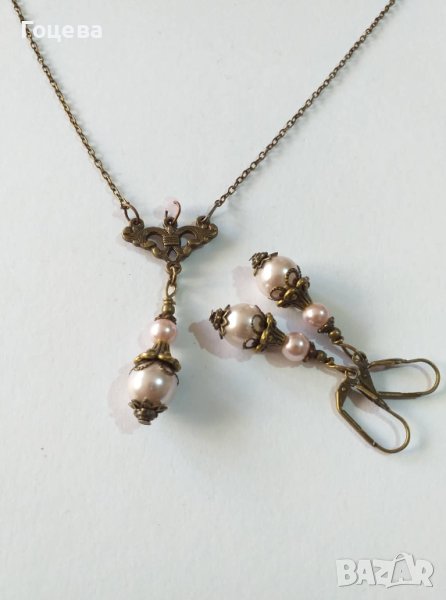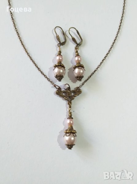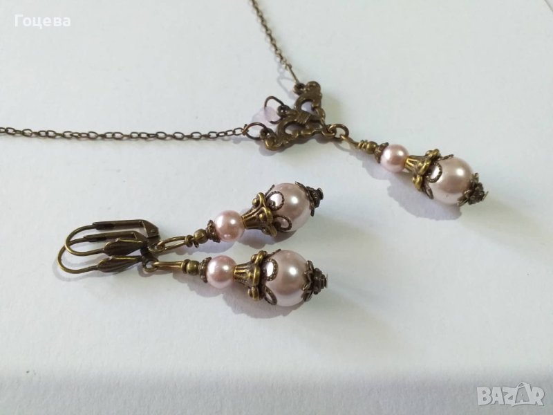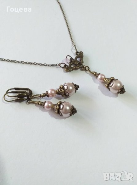 Красив бронзов Викториански Перлен комплект с розови кристални перли → Обява 40710038