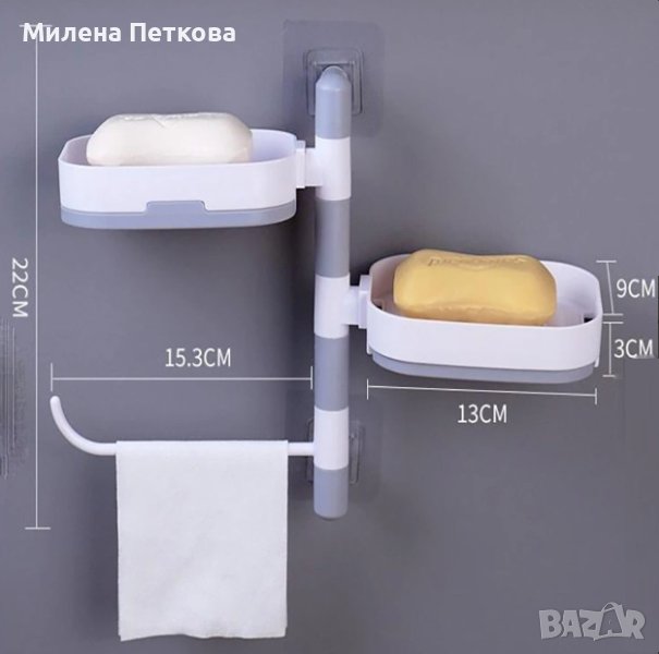 Поставка за баня, подходяща за поставяне на сапун и различни хигиенни продукти и за закачване на кърпа!