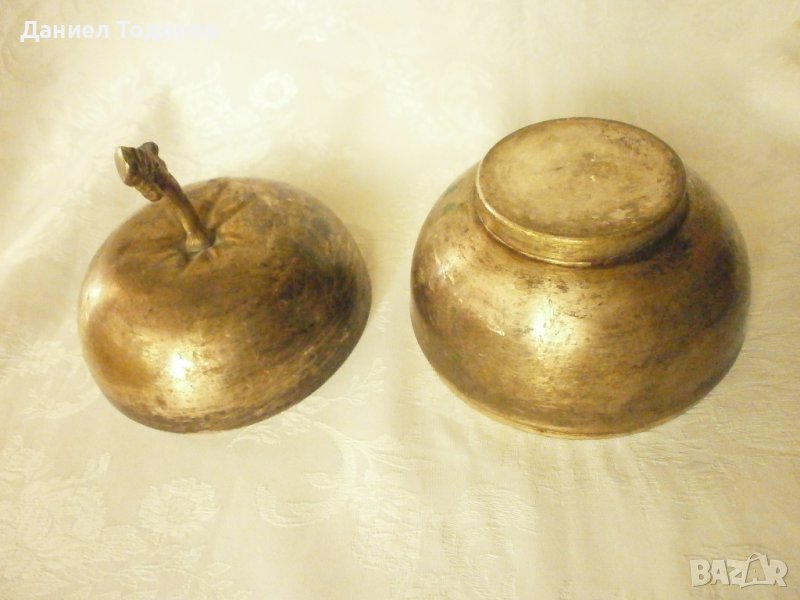 Стара  Бронзова  Посребрена Кутия за Бижута -Ябълка → Обява 40711777