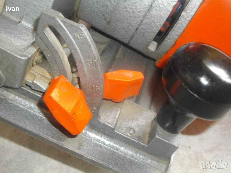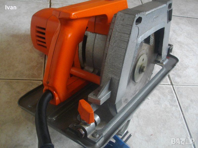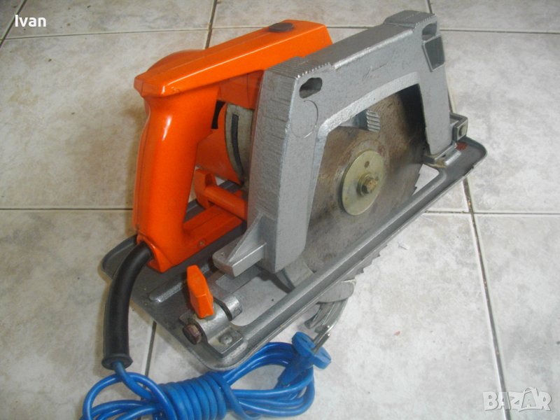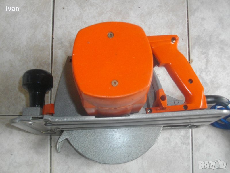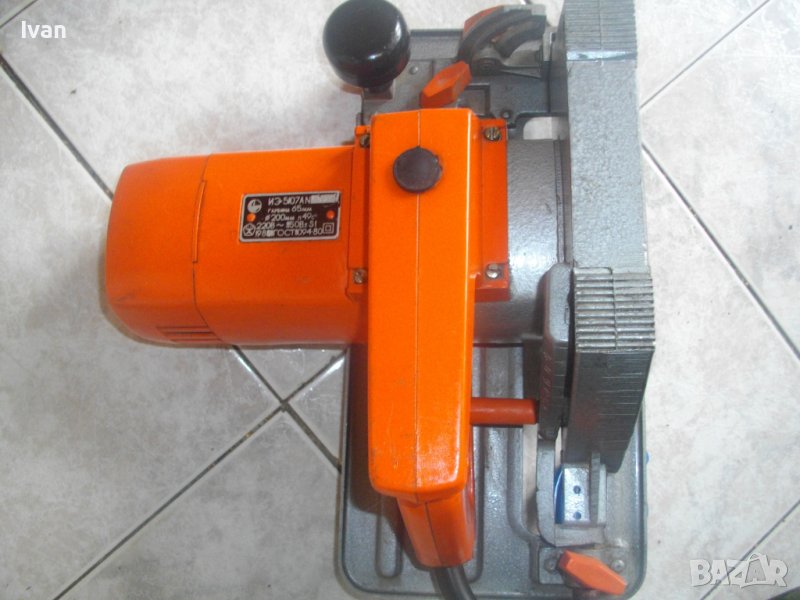 1985 г. ГОСТ 11094-80. Руско произовдство/СССР - 1985 г. Много запазен външен вид и добро техническо/работно състояние. Мощност на мотора 1150 вата, 220 волта, рязане до 65 мм дебелина, наклон на плота 0-45 градуса, за дискове размер ф 200 мм. Поставен оригинален почти нов руски режещ диск с 48 зъба /ГОСТ 980-.80/, ф 200х32х1,8 мм. Диска е в отлично работно състояние. Бакелитова предна дръжка на машината. Масивен корпус и долен плот от дебела стомана. Размери на плота - 350 х 175 мм. Корпус - твърда пластмаса с оранжев цвят, характерни за руското произовдство машини от онова време. Оригинален син захранващ кабел на машината. Тегло на машината - 7,2 кг.