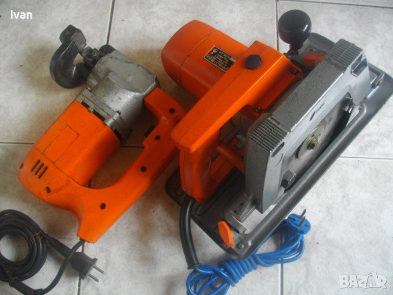 Руски Електрически:Ножица Рязане Ламарина 2,5-3мм/Ръчен Циркуляр ф200мм-1150 Вата-Рязане 65мм-Масивн