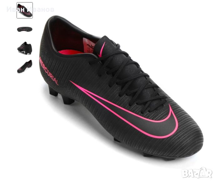Nike MERCURIAL VICTORY VI FGМалко използвани , с минимални следи , без забележки NIKE MERCURIAL VICTORY VI FG са полуавтоматични футболни обувки, предназначени за състезатели, които играят на естествена трева. Смесите са създадени за офанзивен играч, който се нуждае от лек продукт за отличен контрол на топката при повишена скорост.Nike Mercurial Victory VI FG 831964-006 Производител: Nike Линия: Mercurial Предназначение: Естествена трева Горна част: Синтетична Футболни обувки за възрастни, Mercurial Victory FG задръстванията са създадени за офанзивен играч, който се нуждае от светлина продукт за перфектен контрол на топката при повишена скорост. Моделът е оборудван с подметка FG, която е предназначена за твърда трева. В модела Victory производителят е приложил синтетичен microotexist синтетична горна част, която идеално предпазва крака и подобрява усещането за топката, както и подобрена пета за задържане, благодарение на което обувката се адаптира към крака. Подметката от своя страна е проектирана по такъв начин, че състезателят да може да постигне максимум от възможностите си за скорост.