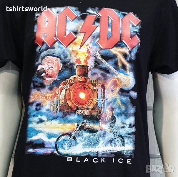 на музикалната група AC/DC - Black Ice с Влак. Тениската е изработена в България под марката PRINTEX от висококачествен 100% пениран памук на 170 гр./м², който запазва цялостта на материята и наситеността на цветовете на черното трико дълго време. С удобна кройка, тениската е свободна и позволява максимален комфорт при носене. Професионално изработен висококачествен дигитален печат