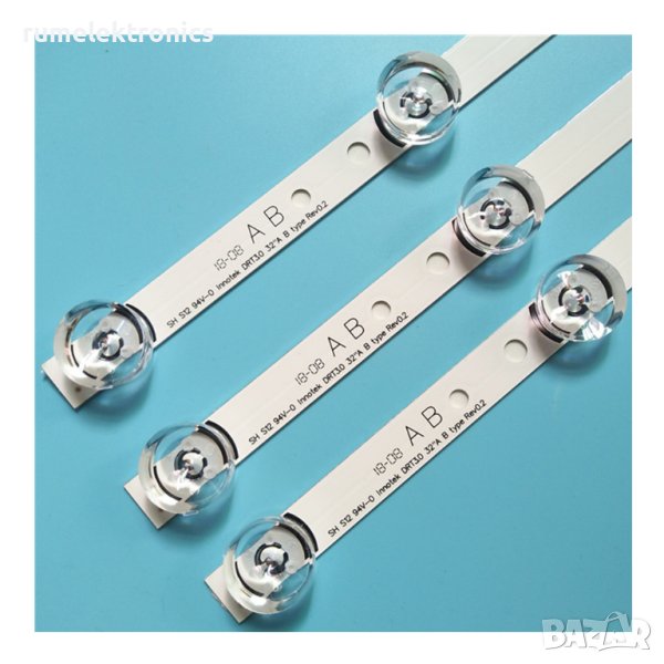 Цената е за комплект 3бр. ленти 590мм, 6 светодиода, 6V.