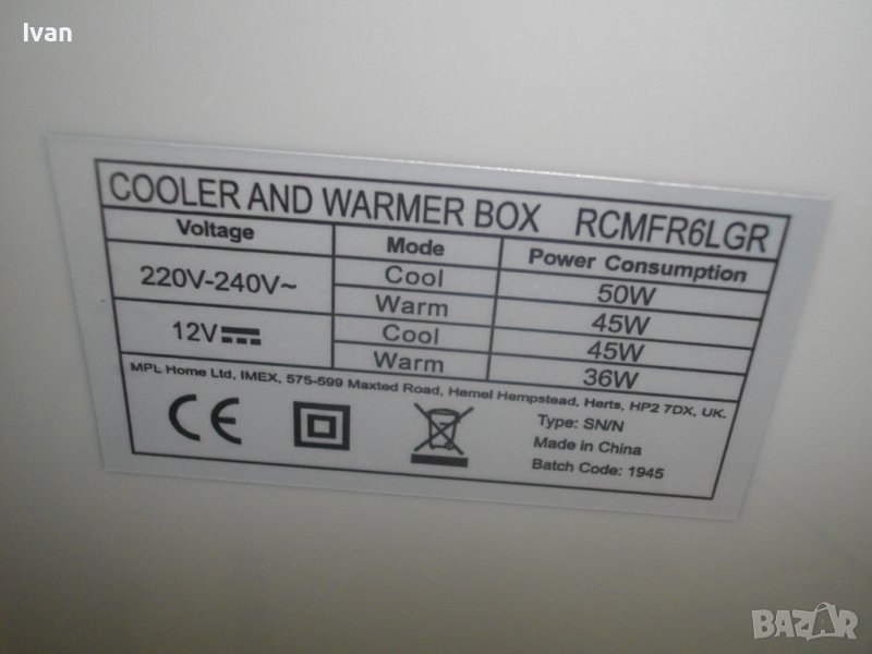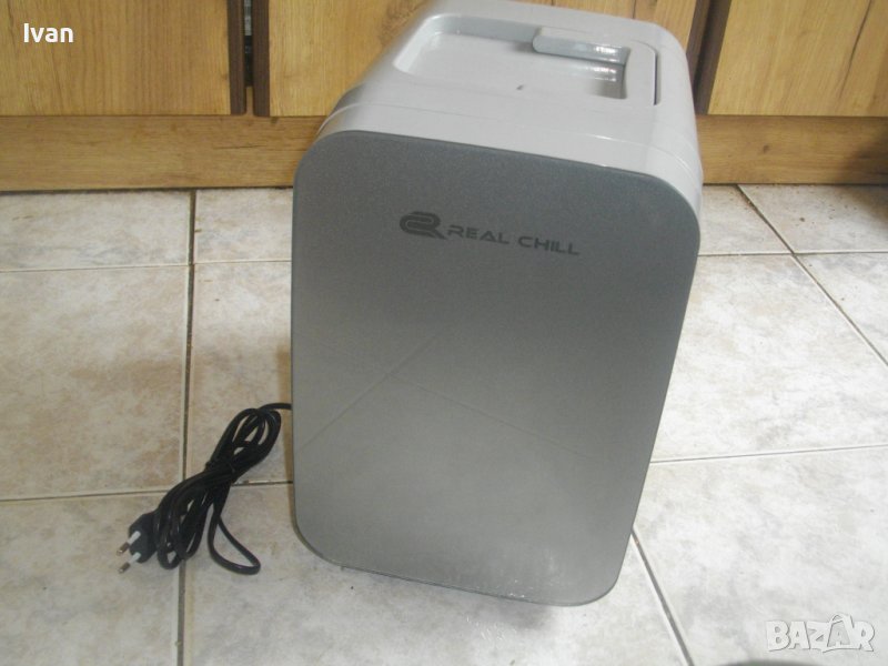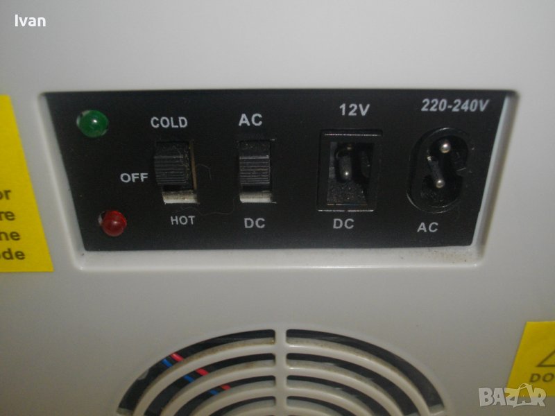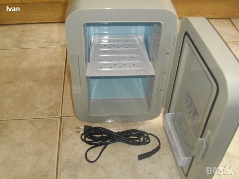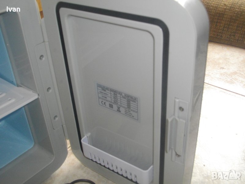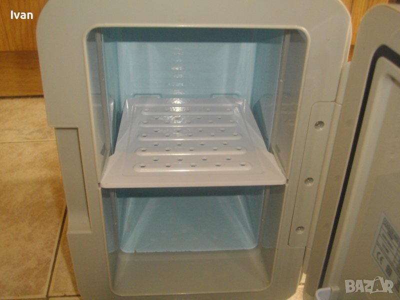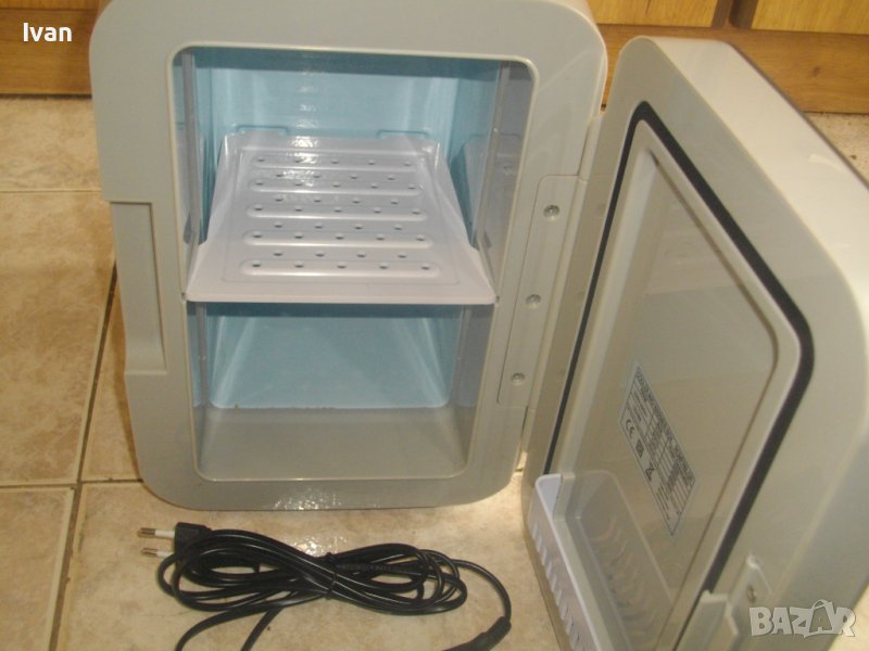 мини хладилник, работещ на 220 волта и на 12 волта акумулатор, чрез кабел, включен на запалката на автомобила.