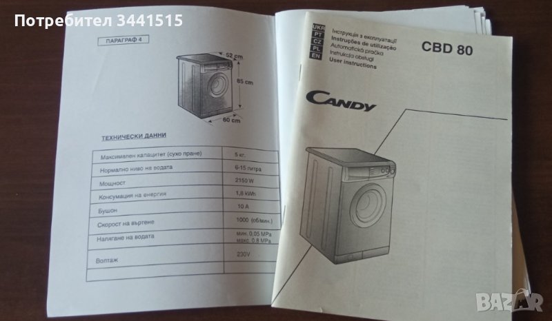 Пералня Candy CBD 80-85 S, 5 kg, 2150W, 1000 оборота/мин → Обява 40719341
