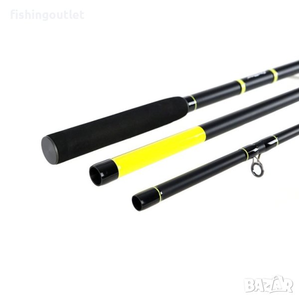 фидер въдици на пазара! Formax Shadow River Feeder е изработена от усилени карбонови бланки, оборудвани с надежден макародържач и SIC водачи.Конструкцията включва три основни секции и три върха от плътен карбон с акция съответно 5, 6.5 и 8 oz. В края всеки връх е оцветен в ярко жълт цвят, за по-добра видимост.Отличен избор за тежък фидер риболов на големи и борбени риби по река Дунав.