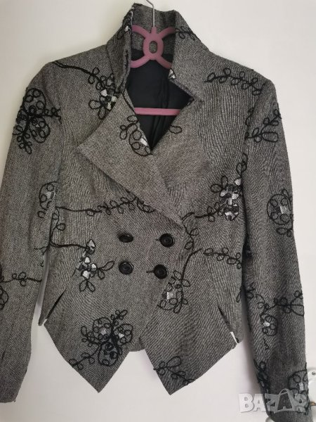 Много елегантно сако с подплата. С нормални следи от употреба. Интересна кройка и уникални бродерии върху плата. Изпращам с Еконт или Спиди с опция преглед и тест.