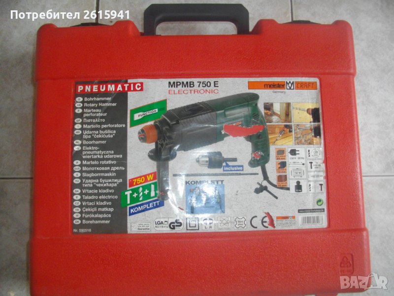 Съвсем нов, неизползван и неупотребяван немски оригинален 750 ватов трипозицонен перфоратор/къртач/ударна бормашина, модел на Мейстер с пълният си комплект от 2 патронника и трети ъглов патронник. Професионален.