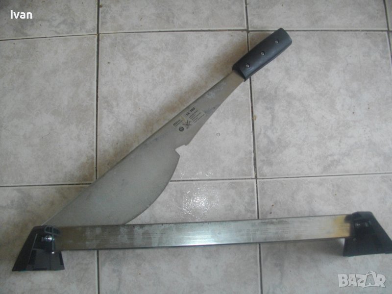 Цялостна дължина на машината - 770 мм. Масивна основа от дебела стомана. Машина стой здраво и стабилно. Ножа е дебела стомана с дебелина - 5 мм. Удобно нехлъзгащо се инпрегнирано, гумирано покрите на дръжката при захвата на ръката.