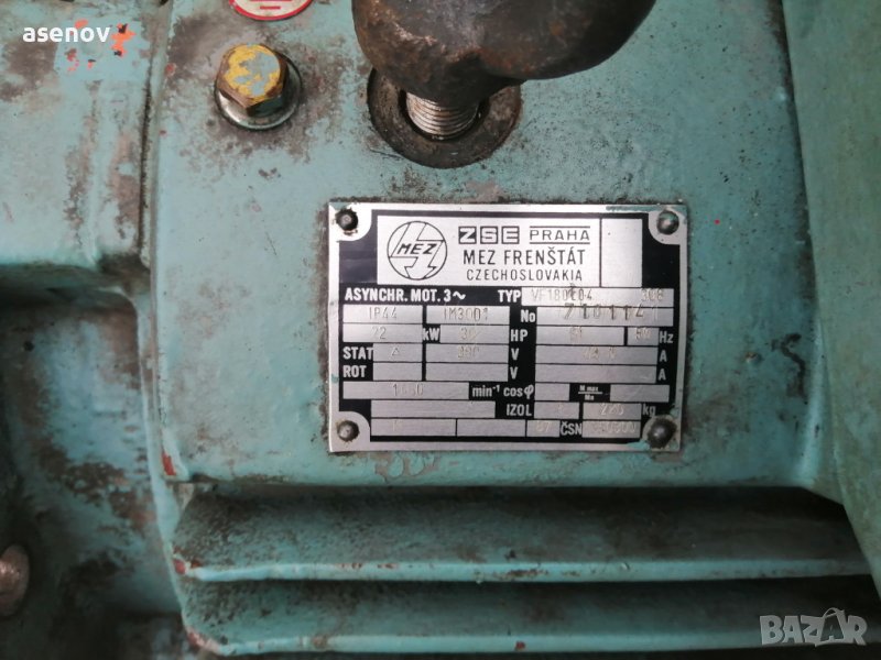 Продавам електрически двигател с мощност 22 киловата, 1450 оборота в минута, тегло 220 килограма, чешки, неизползван