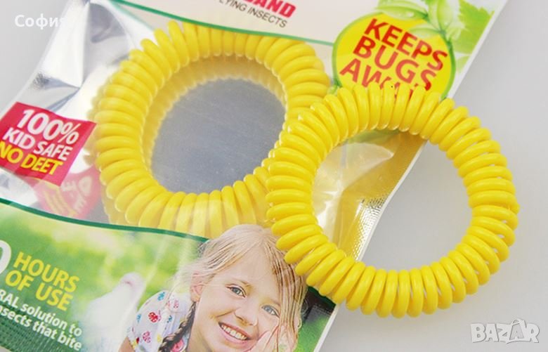 Уникална гривна, тип "разтеглива сприрала", срещу комари за бебета, деца и възрастни. Гривните са със 100% натурални етерични масла от цитронела, което е едно от най-ефикасните естествени средства срещу комари. Цитронелата е източник на терпени, които блокират невронните пътища на насекомите, възпрепятствайки свободното им движение. Нейният аромат действа тонизиращо и успокоява симптомите при нервно напрежение и депресия. Гривната е подходяща за употреба на открито в природата или в закрити помещения - дома, офиса, училището. Може да се носи на ръката, на глезена на крачето или да я закачите на чанта, детска колична и др.