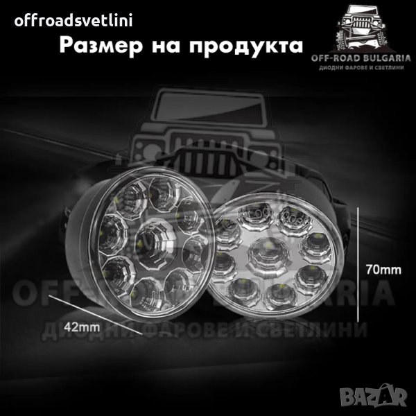 12V 54W 70мм Диодни Халогени за вграждане Мощни Халогени