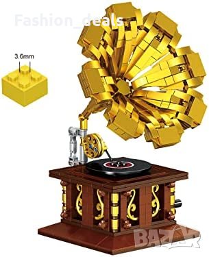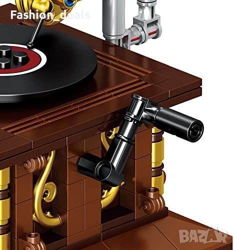 Изящният дизайн възпроизвежда истинския Ретро фонограф, като всеки елемент е изобразен в миниатюрен модел от блокчета.
