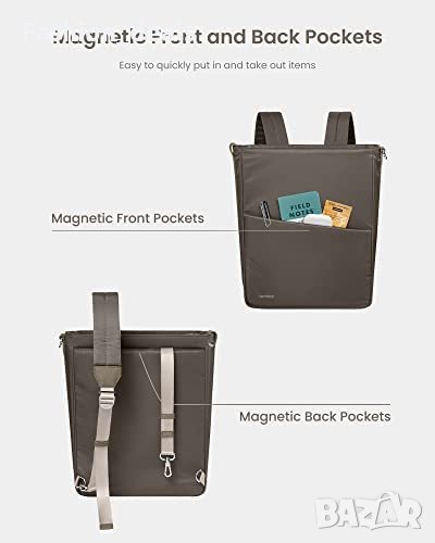 Задният джоб може да придържа презрамките при превръщането в чанта.
