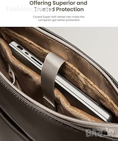 Разполага с голямо горно отворено отделение с мек подплатен калъф за защита на лаптопа.