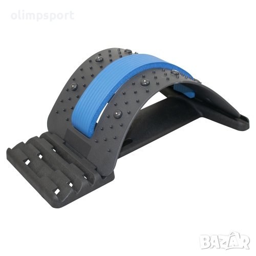 Уред за масаж, разтягане и раздалечаване на прешлените на гърба Magic back stretcher. Раздвижва гръбнака при схващания, увеличава обхвата на движенията и гъвкавостта на тялото, отпуска напрегнатите мускули, премахва стреса, облекчава хроничната болка в гърба и възстановява естествената му извивка. Може да бъде използван както в легнало, така и в седнало положение. Може да бъде сглобен в 4 различни нива на височина – 8 см, 10 см, 12 см, 14 см. По дължина уредът за масаж на гърба разполага с три зони – от двете страни са разположени масажиращи издатини, а по средата – мека лента от NBR пяна за комфорт при употреба. Размери основа – 37х24 см. 4 нива на височина – 8 см, 10 см, 12 см, 14 см. Тегло нето – 400 г. Тегло бруто – 490 г. Материал – ABS пластмаса, NBR пяна. Размери кутия – 40х26х3.5 см. Максимално натоварване – 150 кг.