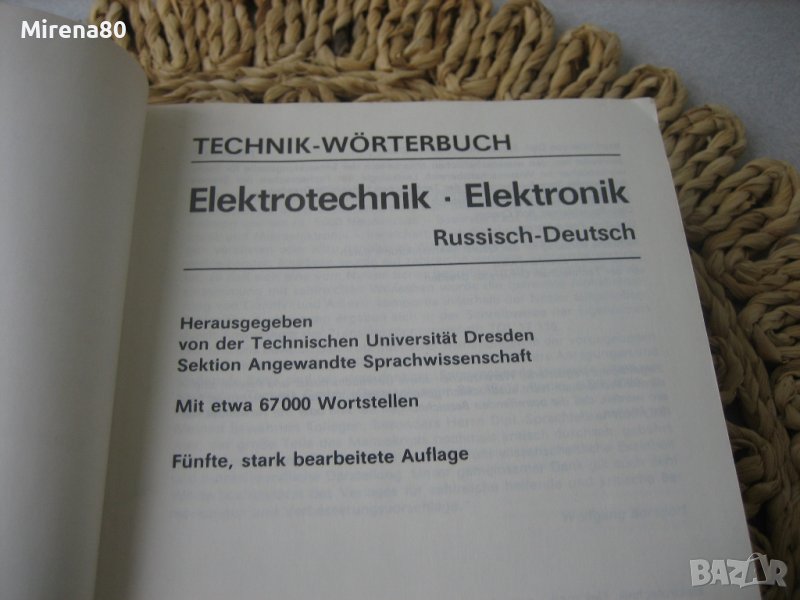 Много ценен специализиран руско-немски елекротехнически речник. Твърди корици, 807 стр. Издание на Техническия Университет в Дрезден, 1990 г. Съдържа нас 67 000 думи и изрази. Неизползван, като нов !