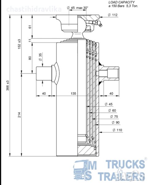 Товароносимост: 5,3т при 150bar и 6т при 180bar
