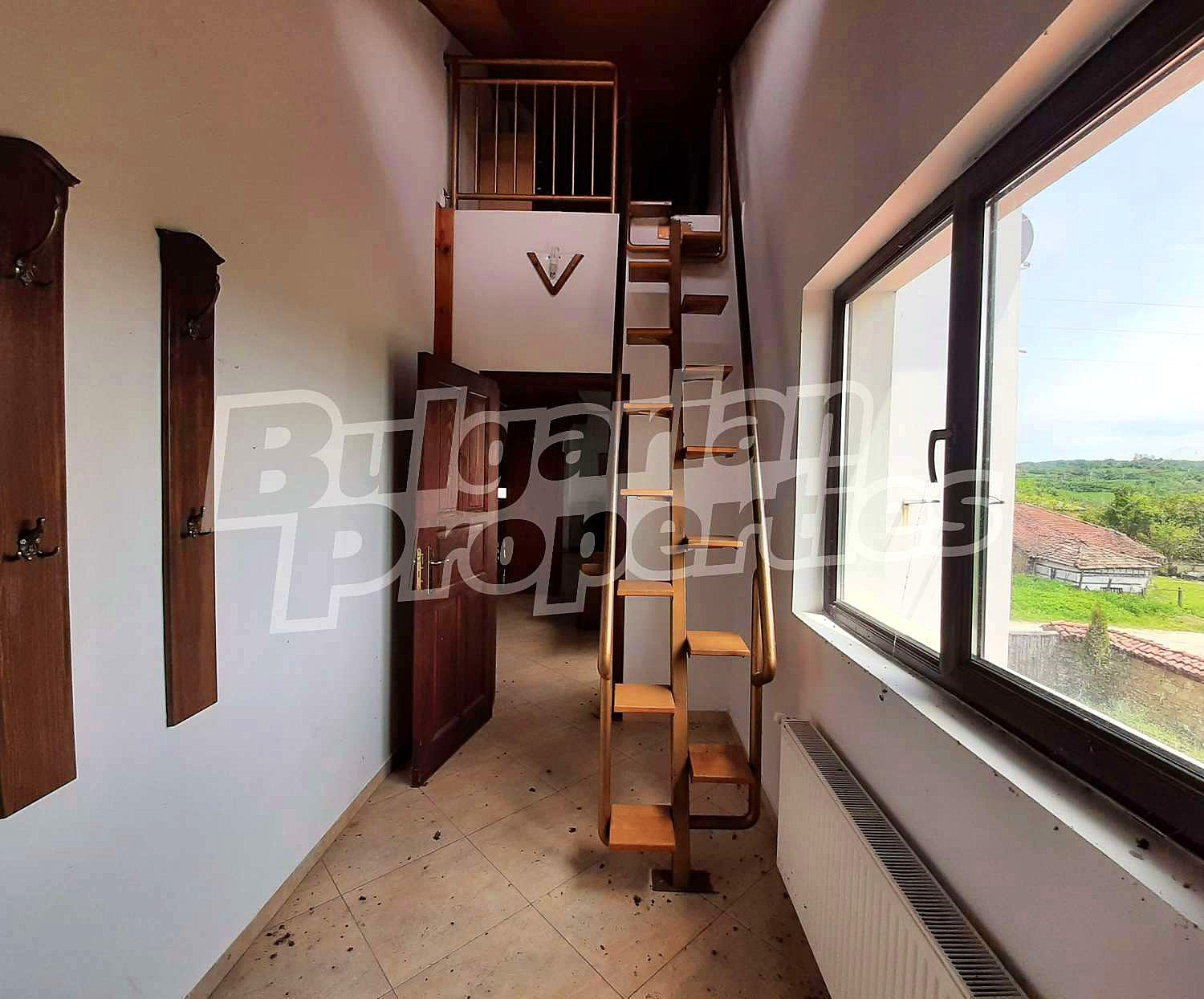 Предлагаме Ви чудесен, перспективен имот, разположен недалеч от град Елена. Имотът се състои от готова за живеене триетажна жилищна сграда със стоманобетонна конструкция ( около 250 кв.м.), с прилепена до нея сграда с голяма площ (около 800кв.м.), със статут на дърводелска работилница и складова дейност, подходяща за производствена база, дърводелница, сервиз, бизнес център, шоурум и други възможни дейности по избор на новите собственици. Площта на земята е 1118 кв.м, теренът е равен.