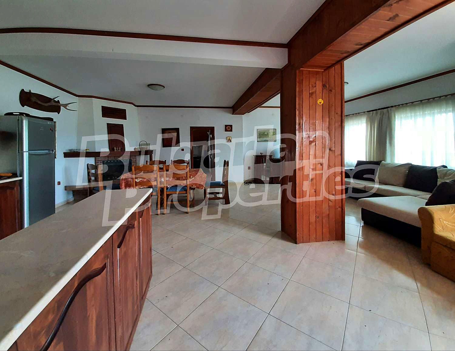 Първи етаж - коридор, дневна с кухня и трапезария, 2 големи спални, баня и тоалетна;