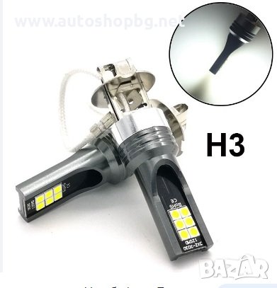 Диодни LED крушки H1/H3 комплект 2 броя без вентилатори и с обикновен цокъл.