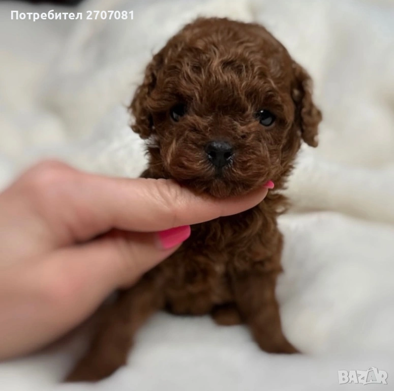 той пуделчета, които нямат никаква смесица с други породи, чист цвят, а родителите може да видите на снимките. Разполагаме с две момичета и две момчета. Едното момиче вече е капарирано. Кученцата се дават с две или три ваксини, с една ваксина НЕ ДАВАМЕ КУЧЕ. Те са вътрешно обезпаразитени с Прококс. Храним ги с хубава храна и се грижим отлично за тях. Преди да вземете кученцето ние правим тройния тест - Корона, Паровироза и Корона. След закупуването му, ние сме винаги на разположение за въпроси. Ежегодно организираме пуделски срещи на които обменяме опит и превръщаме срещата в истинска забава. С кученцето вървят и инструкции за отглеждането му. Нашите кучета са гледани по най-добрият начин, ваксинирани, обгрижвани. Даваме им имуностимуланти Ветомуун. Ние не разчитаме, че ще се привържете към кучето и ще забравите, че сте искали ТОЙ, а той е станал/а МИНИ, или искате МИНИ, а той е станал среден. Когато си купите от нас куче, то е такова каквото сте искали и очаквали. Може да предоставим и препоръки от наши клиенти. Нашите мъничета не се гледат в клетки, а в специални кошарки, водата, пелените се сменят през два часа! Стаите поддържат температура, която е здравословна за бебетата и майката, разполагаме с инфрачервени лампи, климатик и подово отопление. Бащата е висок е 26 см и тежи 3.5 кг., внос от Русия, а майката е висока 27 см и тежи 4 кг. Ние отглеждаме пудели от 15 години и знаем роднините на кучето от три поколения! Не правим смесеци, нито с различни породи, нито смесваме ТОЙ с МИНИ или обратното. Кученцата ще могат да отидат при новите семейства през юни. Ако решите да вземете куче от нас капарирате го, ние даваме ДОГОВОР, който пази Вашите права, нашити, както и правата на кученцето.