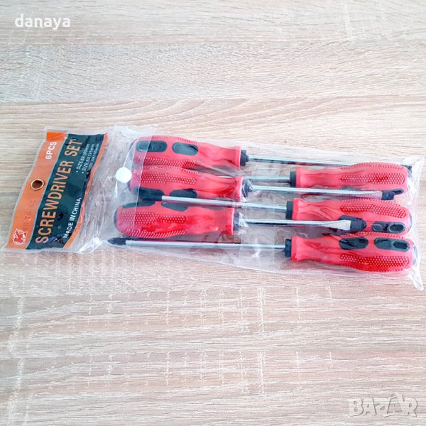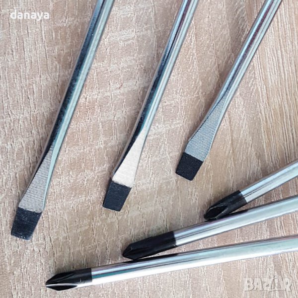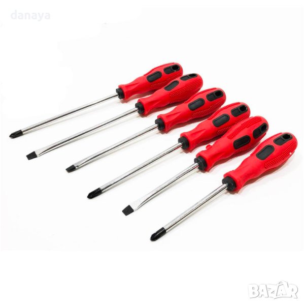 Комплект от 6 броя магнитни отвертки с различна дължина. 3 броя са кръстати отвертки и 3 броя са прави отвертки. С удобна противохлъзгаща гумена дръжка, към която има дупка за закачане. Всяка отвертка има магнит в края си. Здрави и стабилни. Отвертки с магнетизирани накрайници.