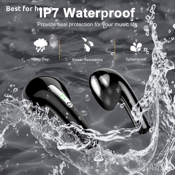 Безжични Bluetooth 5.2 слушалки за поставяне в ушите с 2 шумопотискащи микрофона, супер леки 40H слушалки с дълбок бас IP7 Защита от вода