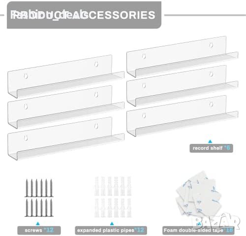 Нов акрилен винилов рафт за плочи прозрачен плаващ за стена съхранение