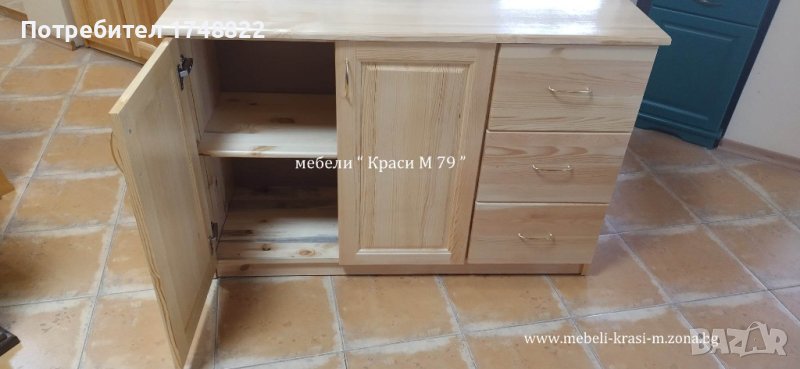 Изработен изцяло от масивна дървесина в натурален цвят. Размери: 120/80/40 см.Наличен!