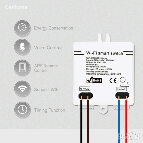 *Поддържа WiFi мрежа. Супер мини тяло (57*41*21 мм), което може да се постави в превключвателна кутия.