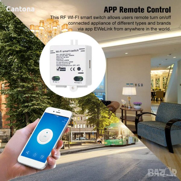 Този превключвател за безжично дистанционно управление е евтино и достъпно устройство, което позволява на потребителите дистанционно да включват/изключват свързани уреди от различни типове и марки чрез приложението EWeLink от всяка точка на света и може да ви осигури невероятно интелигентно управление на дома. Той изпраща данни към облачна платформа чрез WiFi рутер, който ви позволява да контролирате дистанционно всички уреди с APP eWeLink на вашия смарт телефон. WI-FI интелигентният превключвател прави всичките ви домашни уреди интелигентни, стига телефонът ви да има мрежа, вие можете дистанционно да включвате или изключвате уредите си отвсякъде и по всяко време. И като зададете графици за времето за вашите уреди, можете да поддържате безгрижен живот.