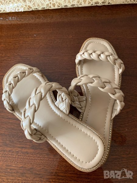 Елегантни чехли номер 40 с плетени каишки и блестящи камъчета