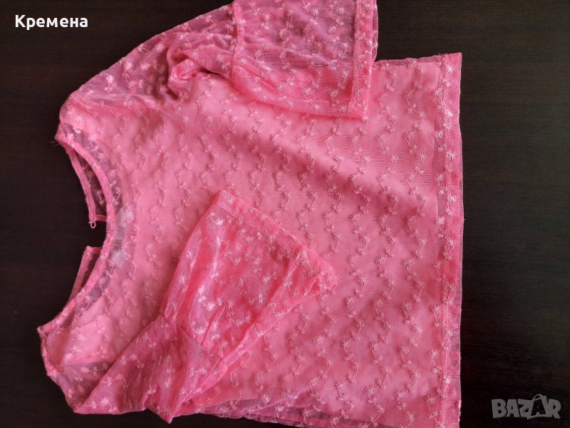 Розовата е обличана само веднъж. При правенето на снимките забелязах една дупчица на ръкава (може и да е била купена така...) - вижда се на една от снимките.