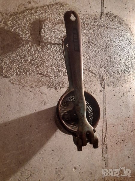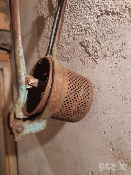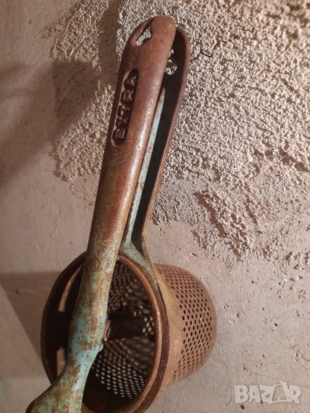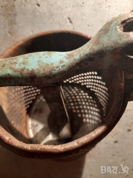 Стар уред за изтискване на плодове и зеленчуци, състояние видно на снимките запазен машинката е здрава.за интериор, декор на битов кът,механа и колекционери на винтидж предмети.