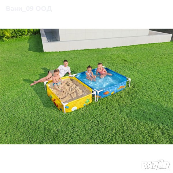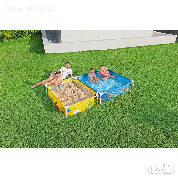Комплектът включва и защитна палатка за пясъчника, за да го предпази от вода, когато не се използва.
