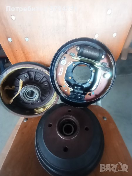 Спирачен к-т, барани с лагери, сп. накладки, цилиндърчета, пружини с механизм и тасове. Вътрешен d180mm. H 43mm.Подходящи за Пежо 205 всички модели 83- 91г.Ситроен Виза от 60 до 109к.с.,Пежо 309 85 - 89г.67к.с.89-93г.109к.с.Ван 85-91г.Оргинални заводски нови. Цена за брой.