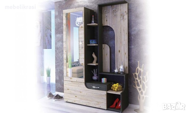 Функционално портманто "Сохо", което предлага пано с три закачалки, шкаф за обувки, гардероб с огледало, чекмедже, етажерки и ниши. Със свежите си цветове е перфектното допълнение към всеки дом.