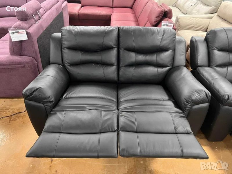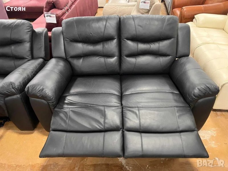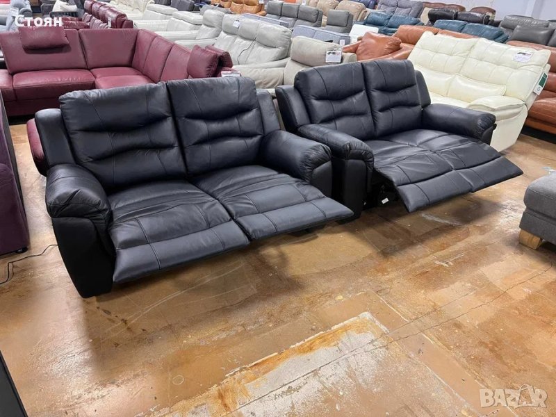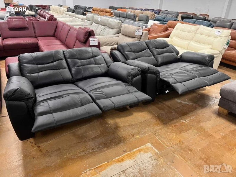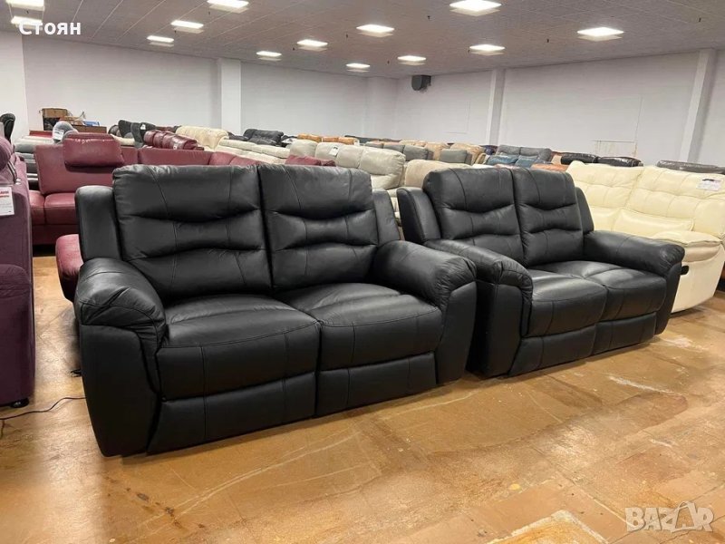 Черни кожени дивани две двойки с релаксиращ механизъм