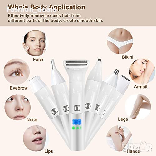Електрическа самобръсначка 6 в 1, предназначена за жени, с 6 сменяеми глави за различни нужди при бръснене.