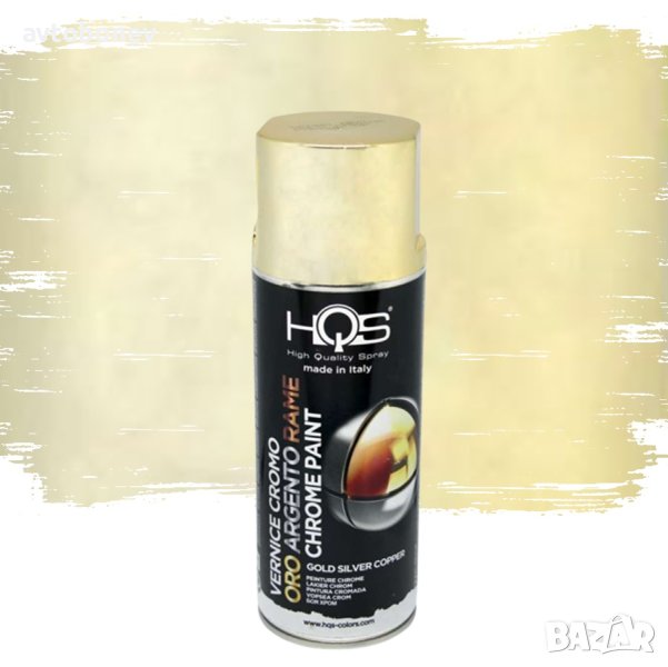 Спрей HQS с ефект ЗЛАТЕН ХРОМ е висококачествена акрилна боя, придаваща огледален ефект-блестящ и елегантен. Подходяща за редица хоби и професионални приложения. Може почти мигновено да се препокрива със следващ слой – лесно, удобно и без загуба на време. Специалната и формула я прави изключително устойчива на атмосферни влияния, бензин и масла с плътен и не избледняващ цвят. В комбинация с грунд осигурява отлична антикорозионна защита. Подходяща за нанасяне върху всякакви повърхости като дърво, камък, стъкло, метал и пластмаса.