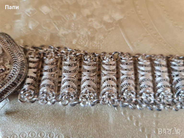 Стар възрожденски колан,изцяло филигриран. Висока проба сребро.Музеен експонат. Дължина 90 см.,пафтата е 9 см., ширина 4 см. Тежи 255 гр. ,проба 925. Изцяло ръчна изработка.
