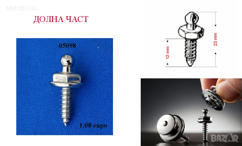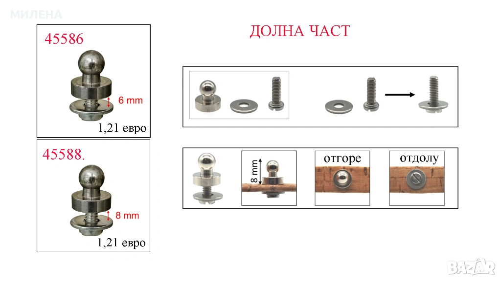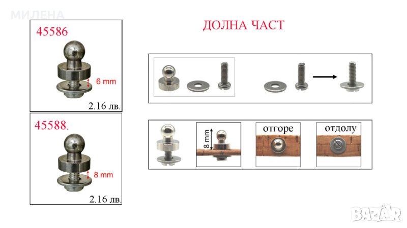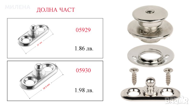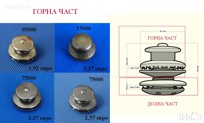 Интересното при това копче е, че горната и долна част могат да бъдат различни в зависимост от материала върху който се закрепва долната част и визията, която желаете да има горната част.