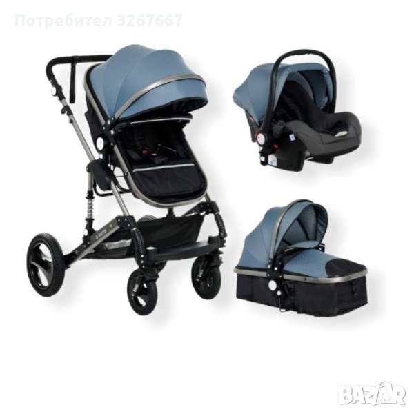 Съдържа столче за кола и кош за новородено, трансформиращ се в летен кош. Столчето за кола е от група 0+, което го прави подходящо от първия ден на раждане до 13 кг телесно тегло. Оборудвано е с голям сенник, покривало за крачета и 3-точков предпазен колан. Трансформиращото се кошче има четири позиционен сенник, покривало за крачета закопчаващо се с цип и 5-точков предпазен колан. През първите 6 месеца или до 9кг. телесно тегло, коша може да се ползва и за пренасяне на бебето. Облегалката и поставката за крачета могат да се регулират в няколко позиции. Двата коша могат да се монтират и демонтират на шасито бързо и лесно в две посоки - с лице към родителя или с лице към пътя. Може да се сгъва до компактни размери, осигуряващи удобство при пренасяне. Оборудвана е с практична поставка за чаша и кошница за багаж с голям капацитет, може да побере множество предмети, подходяща за дейности на открито. Има лента за китка на дръжката за допълнително подсигуряване при спиране в наклон. Свободно въртящи се предни колела на 360 градуса с функция за блокиране, оборудвани с амортисьори за безопасност и комфорт при вибрации. Задни колела с удобно натискане на спирачката с един педал. Свалящ се предпазен борд. Комплекта включва още чанта с подложка за преповиване и лигавник, дъждобран и комарник. Количката е с рамка от алуминиева сплав: лекота при пренасяне, устойчивост на корозия, без ръжда, устойчивост на студ и надраскване. Сертифицирана е с SGS сертификат за качество. Комбинираната количка е подходяща от първия ден на раждането до 3 годишна възраст на детето или до 15 кг. телесно тегло.
