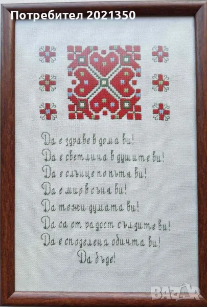 Бродирано с ДМЦ конци. Рамка 20 на 30 см. С антирефлексно стъкло.