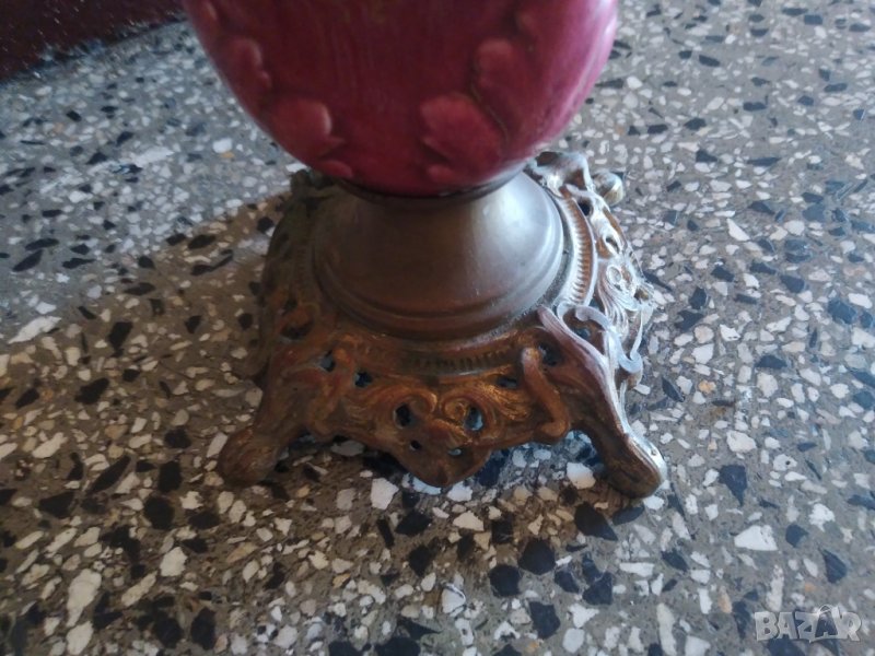 стара газена /газова/ лампа за декорация.корпус от метал и керамика.ръчно декорирана.