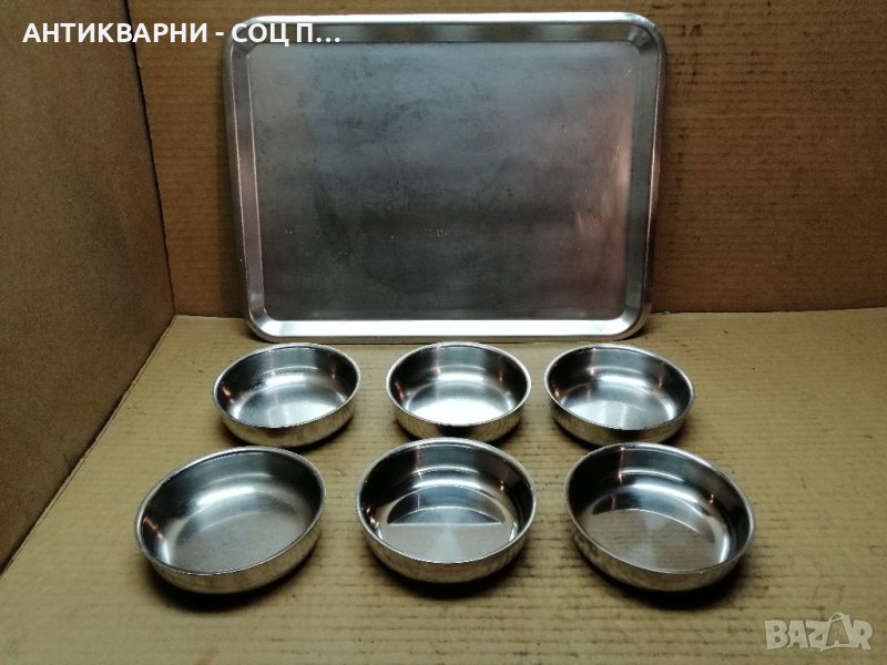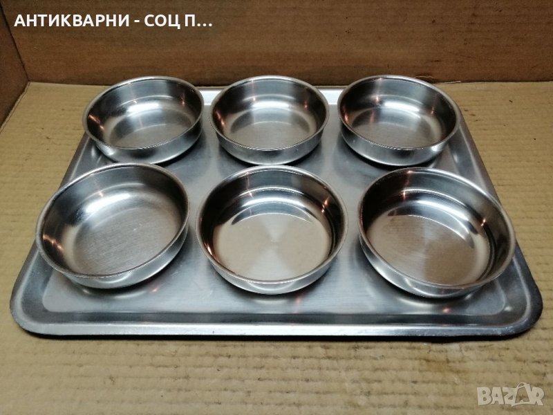 Здравейте - Продавам Комплект Соц Хром Сервиз, Хром Десертни Купички с Хром Табла, Поднос!