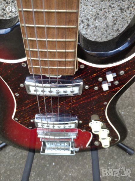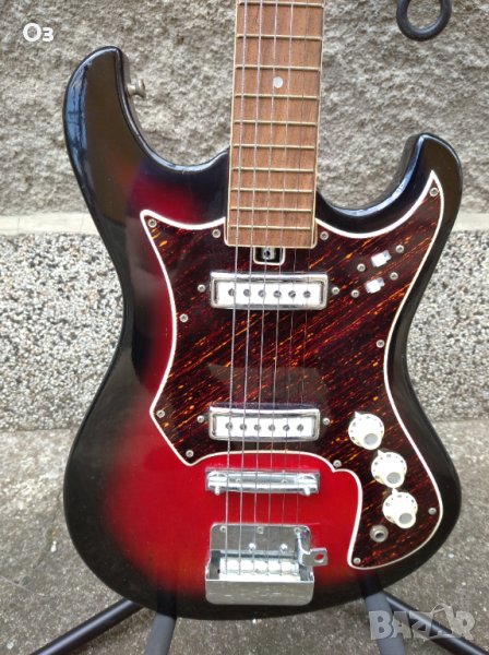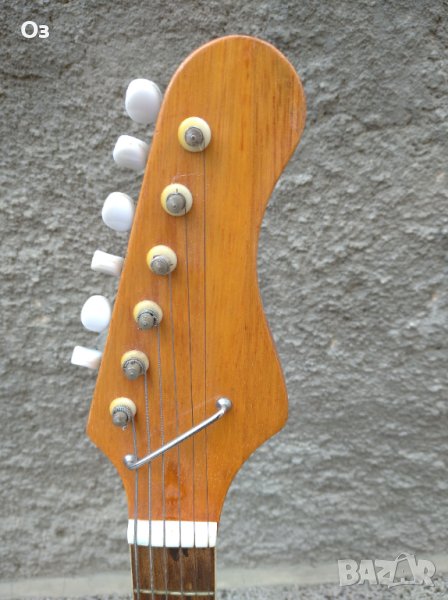Японска китара от 60те. Китарата роботи, адаптерите работят, прекъсвачите работят, праговете нямат износване, потенциометри работят, струните са томастик (стари са), но като нищо да са оригиналните. С китарата в общи линии не е свирено. Лека и удобна, грифът е прав, няма лък на пето прагче, няма усукване. Струните стоят високо от грифа и трябва да се пипне. Китарата заслужава да я пипне някой, който разбира. Липсва ръчката на тремолото и капака на струнника. Има снимка на китара в пълен вид, за да видите какво липсва.